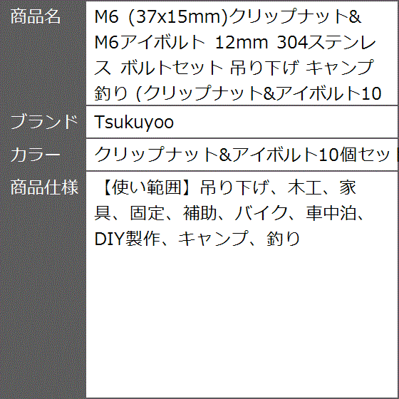 Array ( [0] => utf-8 ) 【ダハナビ】M6 37x15mmクリップナット& M6アイボルト 12mm 304ステンレス 吊り下げ MDM( クリップナット&アイボルト10個セット)の最安値を発見。フリマ、オークション、有名サイトとも価格比較できます。