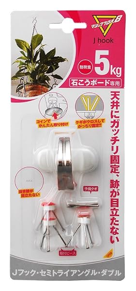日軽産業 鉄 フック マジッククロス8 J hook セミトライアングル・ダブル MJ-027E 奥行3.3×高さ3.8×幅3.4cm キャップ1コ、取付ピース3コ、クギ12本