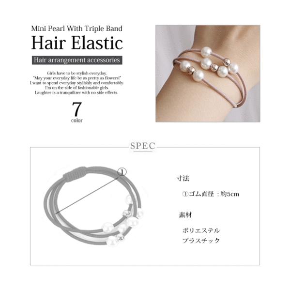 個包装してません。ラッピング不用、たくさんほしい方におすすめ●全7色!!+4★3連パールパーツデザインヘアゴム●3本のゴムで髪をしっかり固定するので、安定感のある結び心地です!
