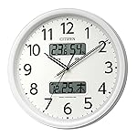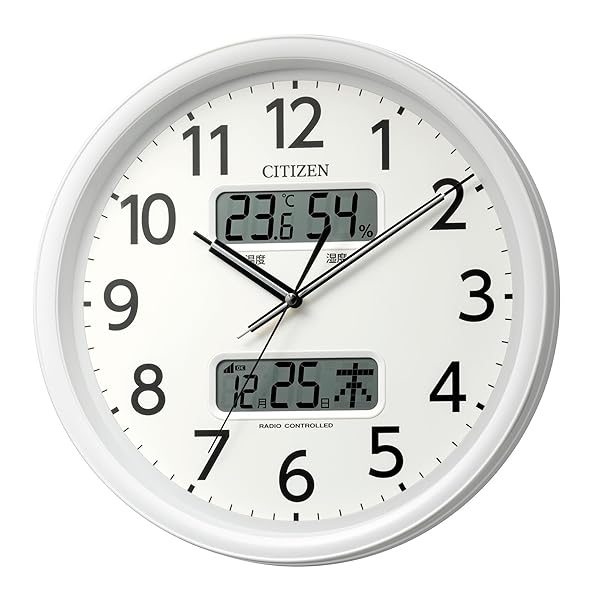 リズム(RHYTHM) シチズン 掛け時計 電波時計 アナログ 温度 湿度 カレンダー (デジタル 液晶表示) 静かな 連続秒針 白 Φ35x5.6cm CITIZEN 8FYA06-003