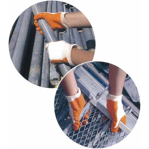 商品コード:2100942 1双あたり319円 ■原手に綿100%生地を使用することによって吸湿性に優れ、手に優しく柔らかく甲部は強い作業用の手袋です。 ■メリヤス生地にコーティングしている為抜群の耐摩耗性があります。 ■鉄筋・鉄骨・ブロックを扱う作業。林業・建築・土木・廃品回収などにご使用頂けます。 サイズ(製品全長):S (23.5cm)M (24.5cm)L (25.0cm) 素材:表:塩化ビニール、裏:綿 カラー:オレンジ 数量:30双(3双入×10) 生産国:日本