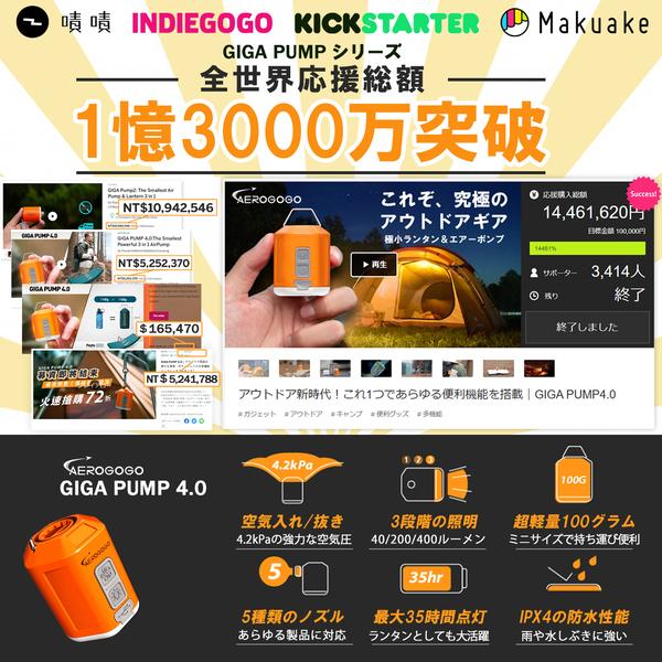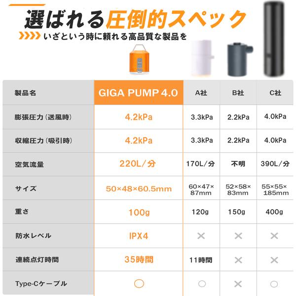 GIGA PUMP 4.0は優れたキャンプ用ランタンも兼ね備えています。底部に8つのLEDを搭載。暗闇の中でも明るさ40ルーメンから400ルーメンまで調整可能。