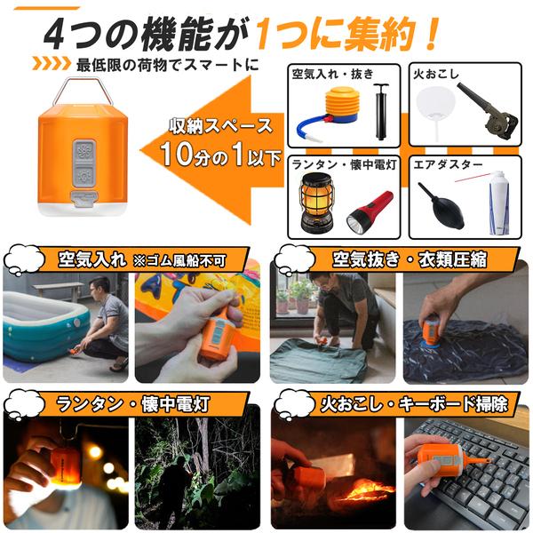 収納スペース10分の1以下。空気入れ・空気抜き・ランタン、火起こしや衣類整理、キーボード掃除が可能。荷物を最低限に抑え収納スペースを大幅に節約できるので、旅行やアウトドアに最適です。