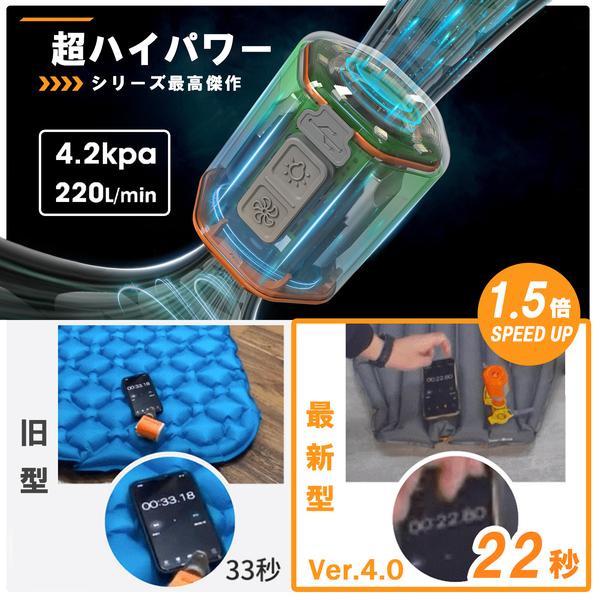 特許を取得したデュアルワイヤーラッピング構造モーターを採用し、コンパクトながら高性能なエアーポンプを実現。空冷設計をアップグレードしており、製品寿命も期待できます。最大4.2kPaの空気圧と220 L/minの驚異的な空気流量を提供します。