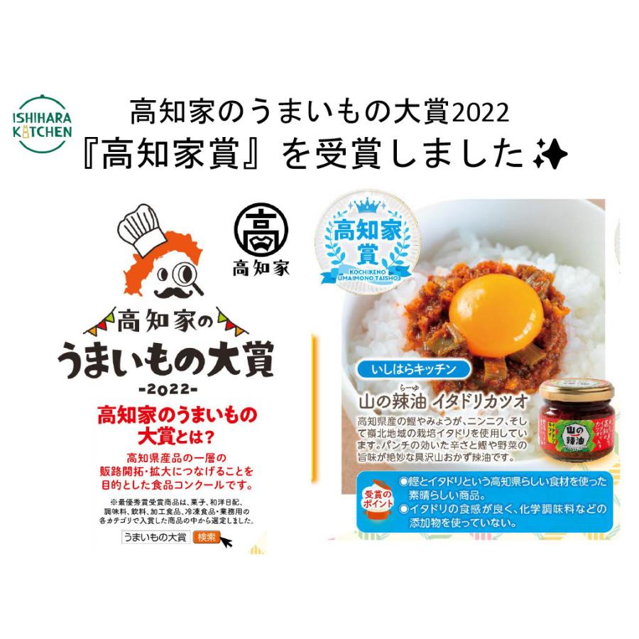 『辛さ』への妥協のないこだわりと、高知県産のカツオと野菜たっぷりの『旨み』がクセになる、食べるおかずラー油です。