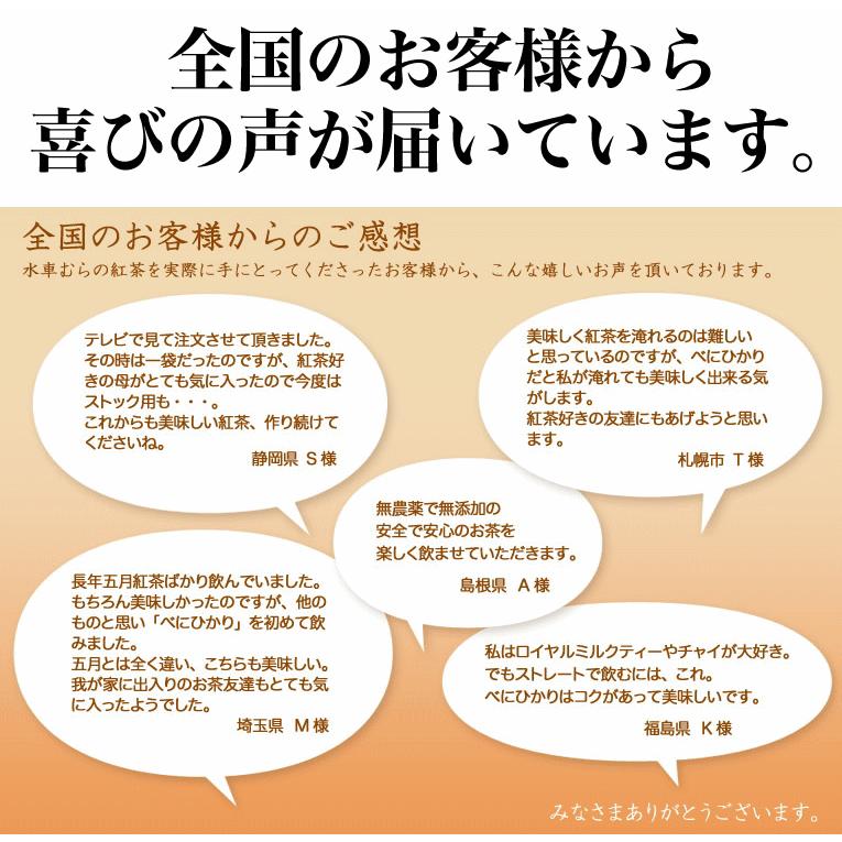 こちらの商品は「よりどり3袋ごとお買い上げでメール便送料無料」の対象商品です。1〜2袋→メール便送料300円3袋→送料無料4〜5袋→メール便送料600円6袋→送料無料※紅茶の新茶は新茶シールは貼っていませんのでご了承下さい。無農薬、無化学肥料栽培茶名称 紅茶原材料名 緑茶原産地名 静岡県産内容量 100g賞味期限 裏面下部記載保存方法 高温、多湿を避け移り香にご注意下さい製造者 水車むら農園 藤枝市瀬戸ノ谷12317-1 TEL 054-631-7009