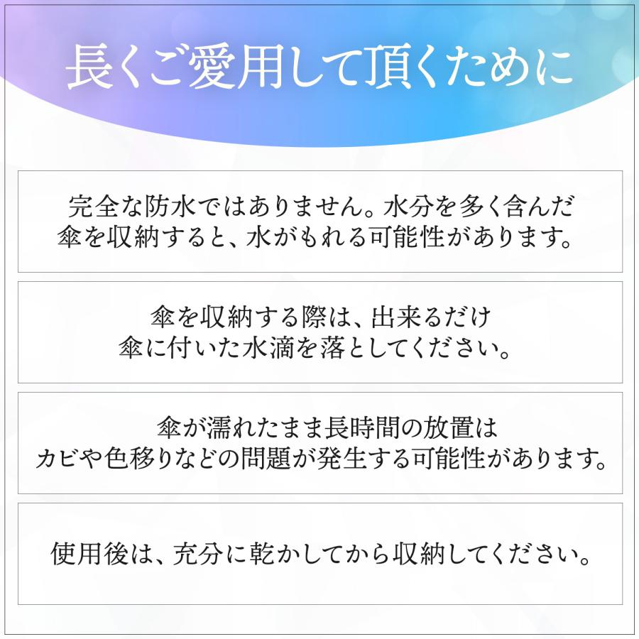 ※傘が濡れたまま長時間の放置は、カビや色移りなどの問題が発生する可能性があります。