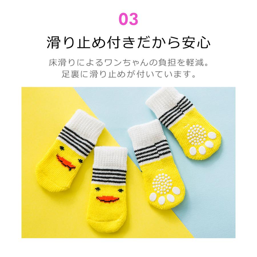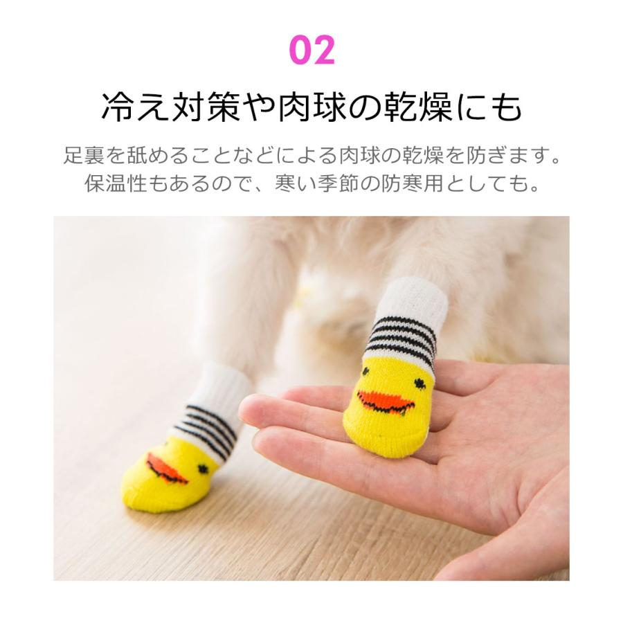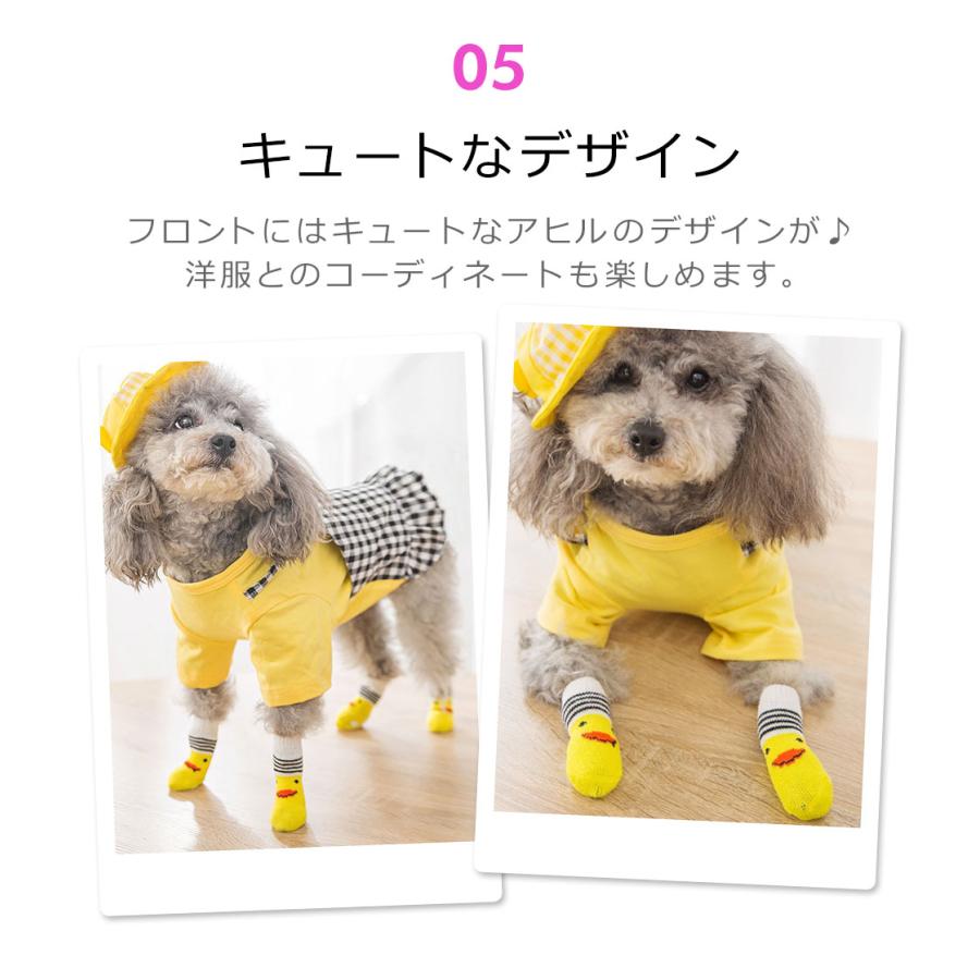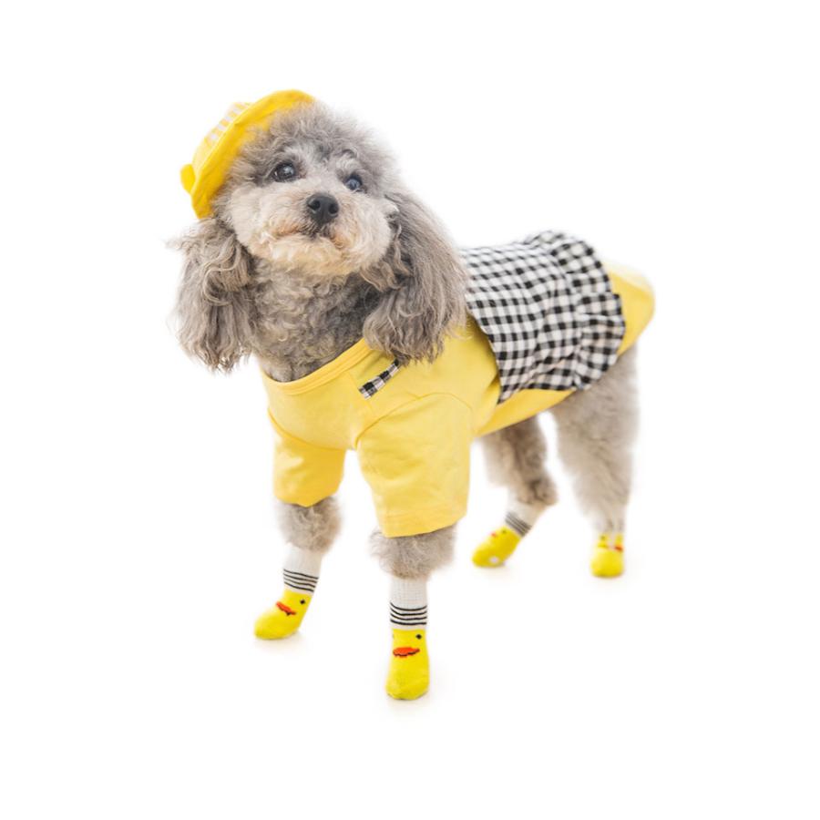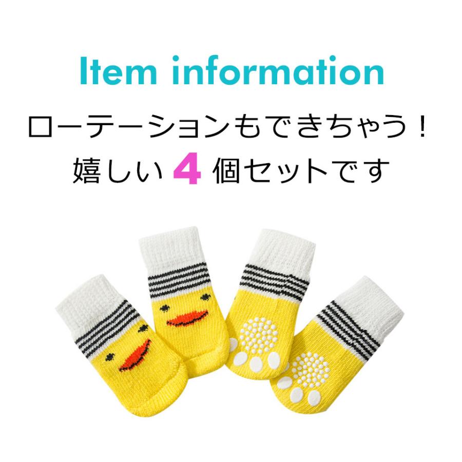 フロントにキュートなアヒルのデザインがある犬用靴下。ドッグウェアとのコーディネートも楽しめる犬用靴下です。