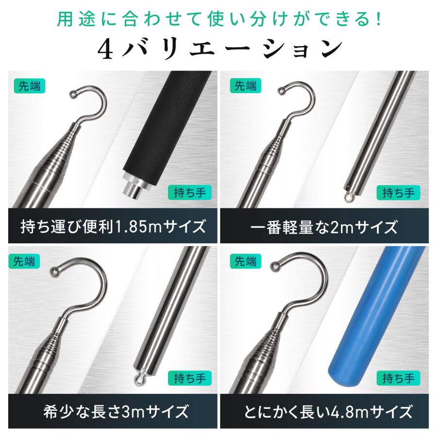 用途:錆に強く、耐熱性にも優れ、強度があるステンレスを採用。しなりの少ないロッド設計。ストラップ取り付け可能 2メートル用