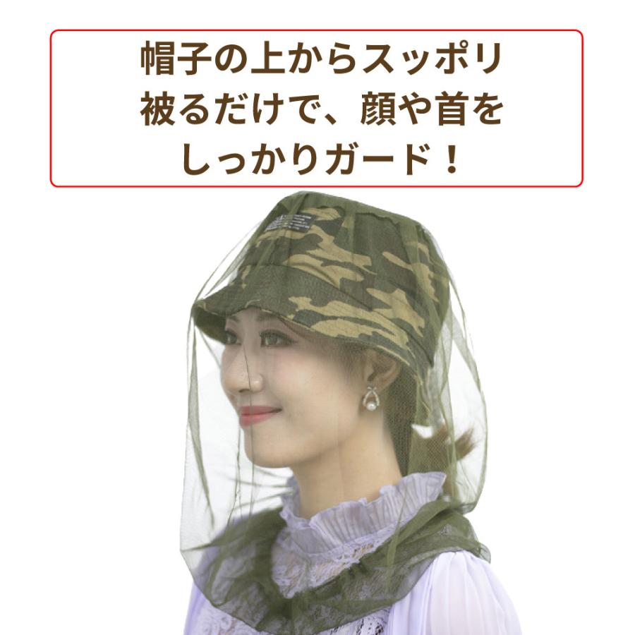 キャップやハットの上から被るだけで、嫌な虫から顔や首を守ります。