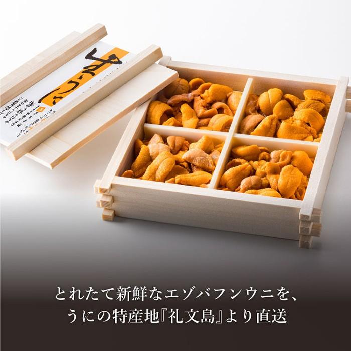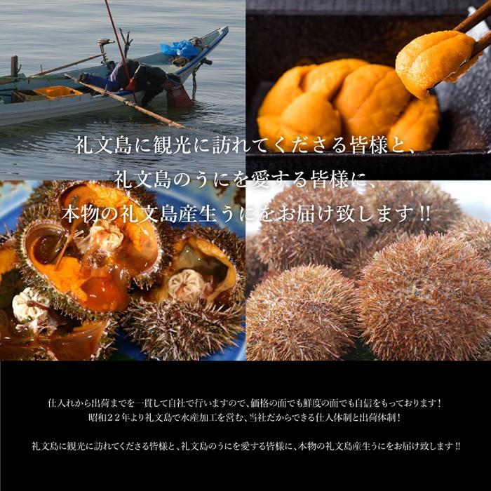 先ず当店の生うには、品質保持剤や防腐剤、型崩れを防止するための『ミョウバン』は一切使用しておりません! 新鮮な生うに本来の味を召し上がっていただきたくこのような方法でお送りしております。 日本海にある礼文島の海は時化が多く、また資源保護の観点から水揚げ量も制限されており毎日うに漁が行われるわけではございません! そこで以下、商品説明にございます事柄についてご了承、ご承知いただきますようお願い申し上げます。