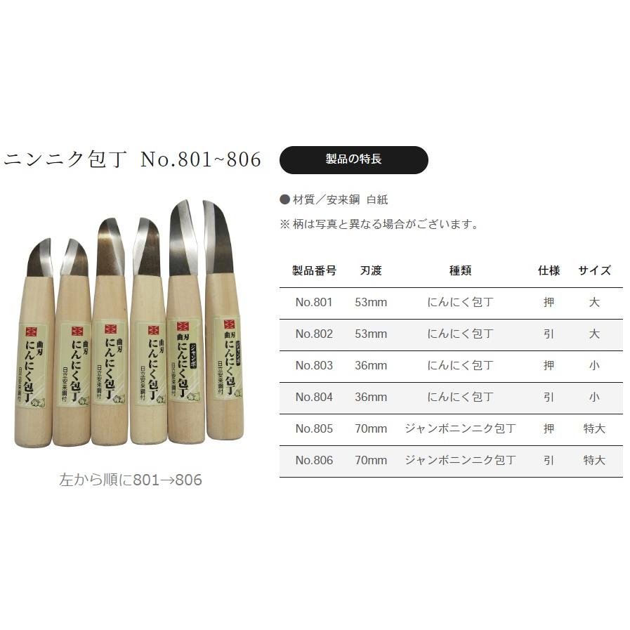 ■特長■・にんにくの収穫時に根を切り落としたり、皮をむいたりすることができる包丁です。・刃には安来鋼を使用しておりますので、切れ味・耐久性共にバツグンです。・中子にクサビを付けており、クサビとボンドを付けることによって刃が抜けにくい構造になっております。・曲がり刃を上から押さえて使う押切タイプと、手前に引いて使う引切タイプがございます。 刃長は大・小がございますので、お客様の使いやすいサイズをお選びください。・製品番号:No806・刃渡:70mm・タイプ:引切・サイズ:特大