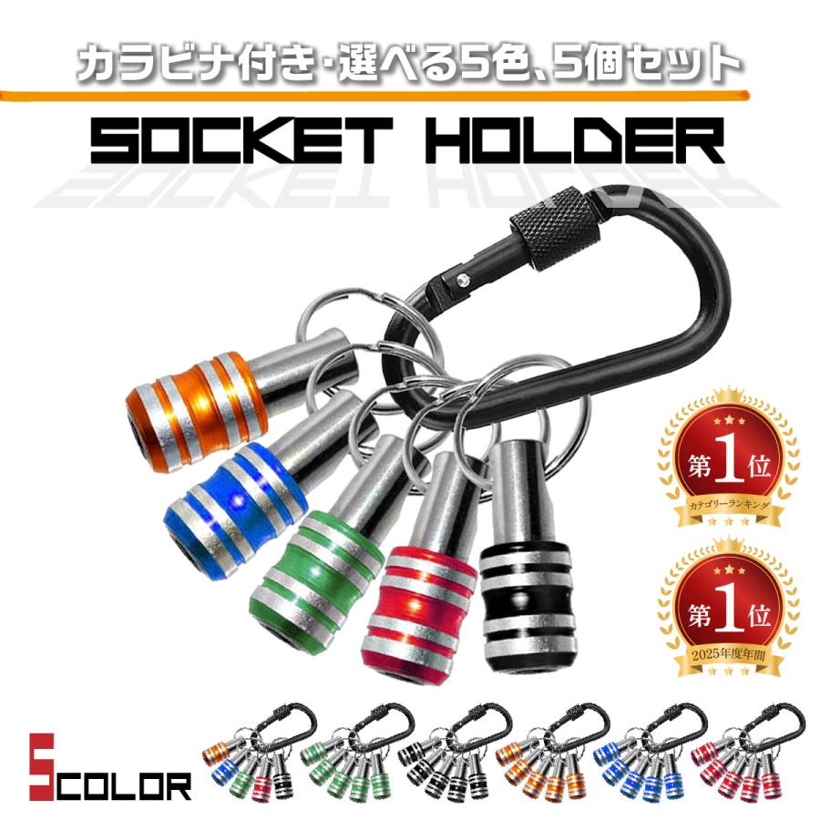 商品名:ビットホルダー ソケットホルダー 5個セット カラビナ付き インパクト ドライバー ドリル ビット収納 工具 DIY