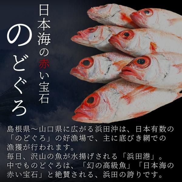 日本有数の好漁場に恵まれ、どんちっちブランドとして全国でも有名な島根県浜田市の高級魚「のどぐろ」は、他産地のものに比べて脂質が高く、上品な甘みと旨みは「白身のトロ」とも呼ばれるほどの美味。全国でもトップクラスの脂のりを誇るのどぐろに、ひと塩かけることで程よく身が締まり、旨みがさらに凝縮された一夜干しはまさに至極の逸品です。[父の日 母の日 敬老の日 お歳暮 お中元 ギフト プレゼント 50代 60代 70代 80代]
