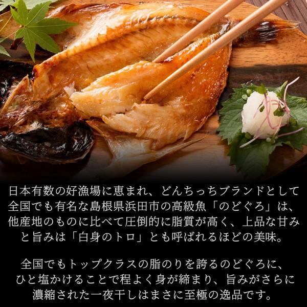 日本有数の好漁場に恵まれ、どんちっちブランドとして全国でも有名な島根県浜田市の高級魚「のどぐろ」は、他産地のものに比べて脂質が高く、上品な甘みと旨みは「白身のトロ」とも呼ばれるほどの美味。全国でもトップクラスの脂のりを誇るのどぐろに、ひと塩かけることで程よく身が締まり、旨みがさらに凝縮された一夜干しはまさに至極の逸品です。[父の日 母の日 敬老の日 お歳暮 お中元 ギフト プレゼント 50代 60代 70代 80代]
