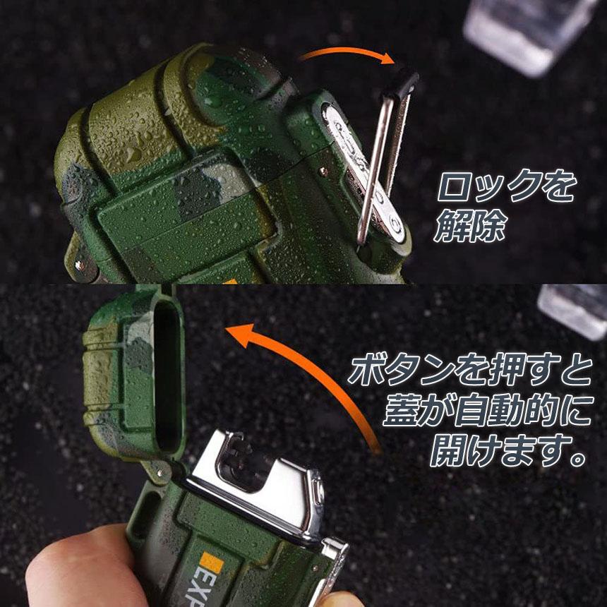 【使用簡単】電子ライターの蓋を開ければ、スイッチを押すと約1-2秒で点火。(点火完了後、蓋を閉めてください)