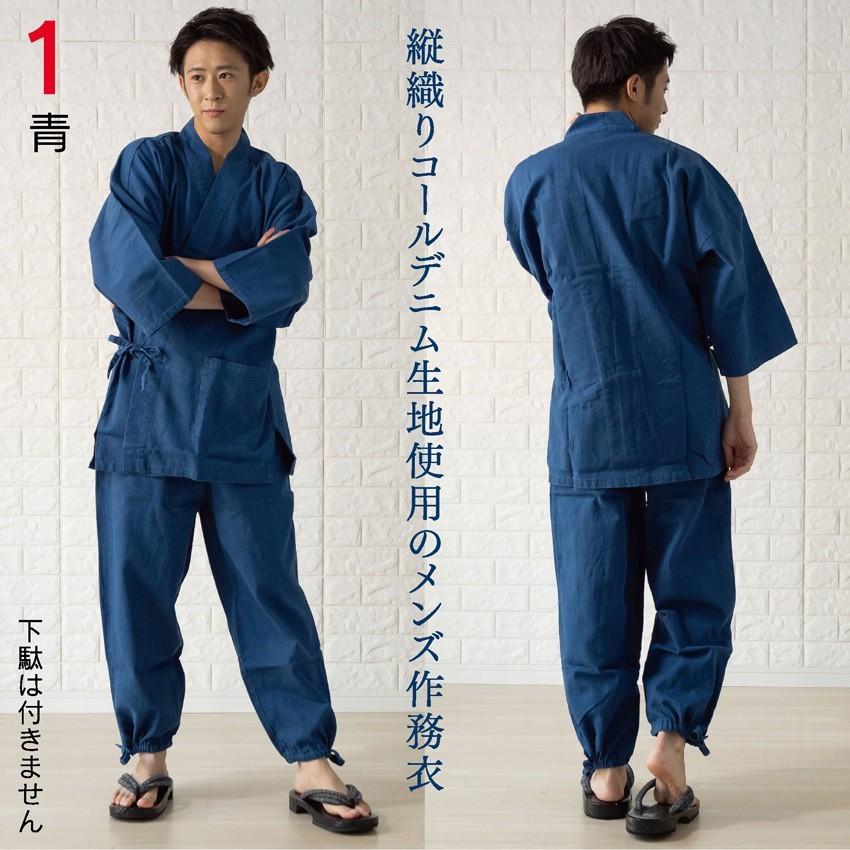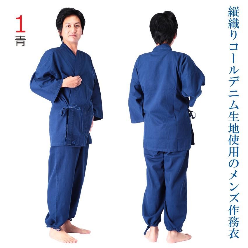 男性用 デニム 作務衣 上下 メンズ さむえ 部屋着、作業着に
