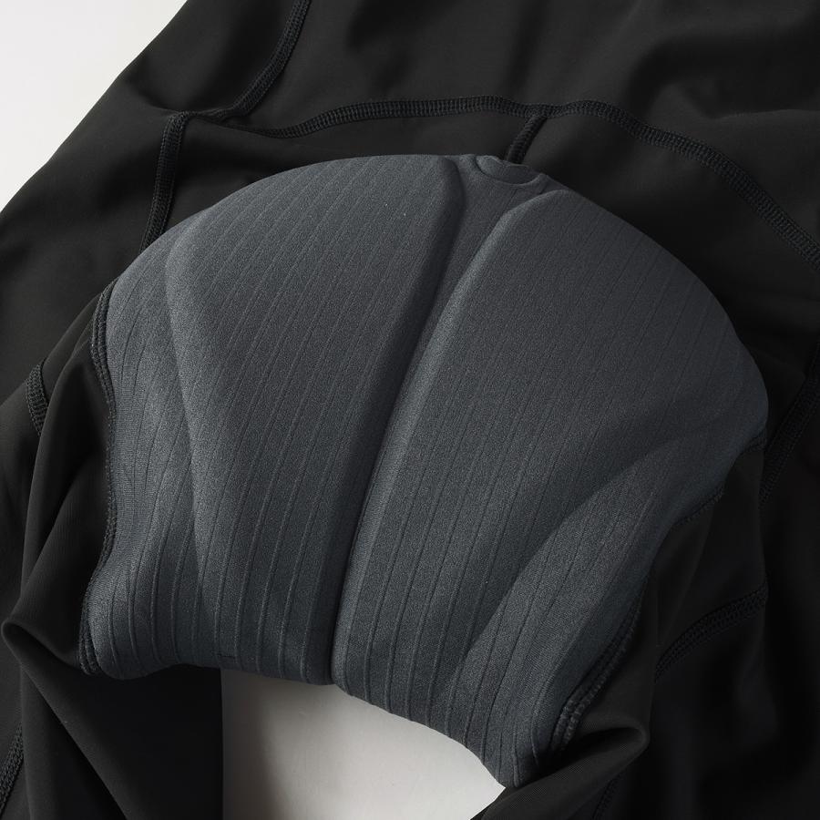 裾部分には7cm幅のワイドな裾止めを採用。食い込みを防ぎながらもしっかりとフィットし、太腿を締めつけすぎず安定感を実現しています。