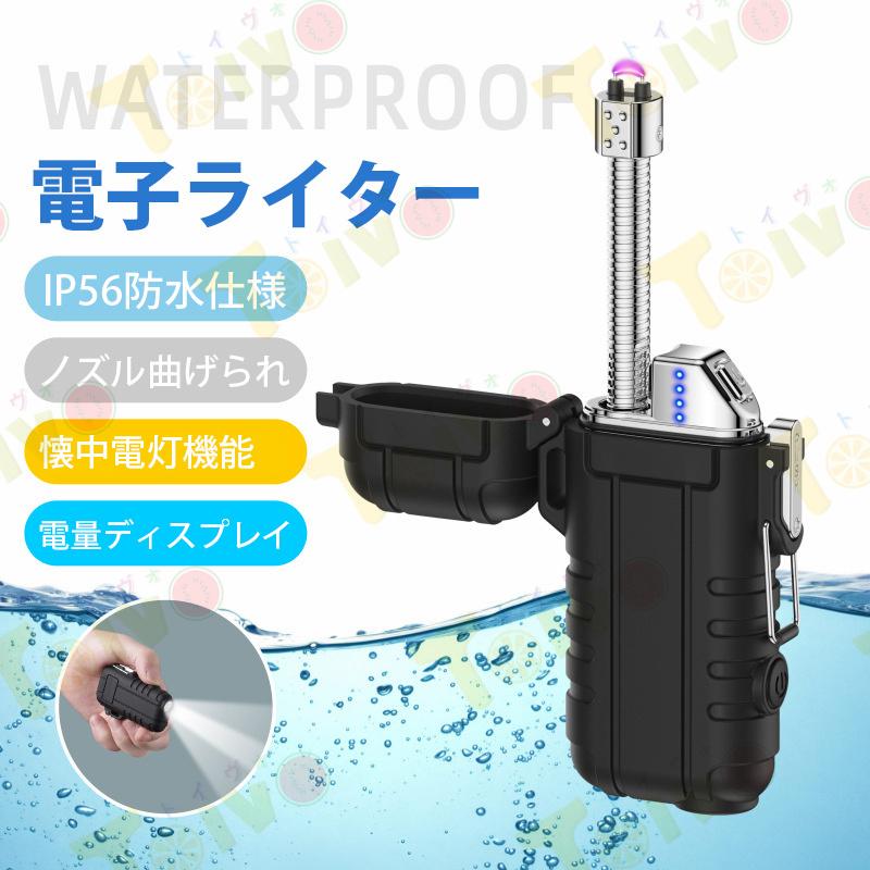 充電式電子ライター 懐中電灯機能 電量表示 ノズル曲げられる IP56防水仕様 プラズマ 無炎 防風 ダブルアークライター 軽量薄型 持ちやすい
