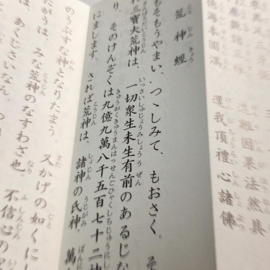 着座普禮、一切清浄、本覚讃、荒神経、佛説大荒神施與福徳圓満陀羅尼経、靈神三寶荒神、五大明王