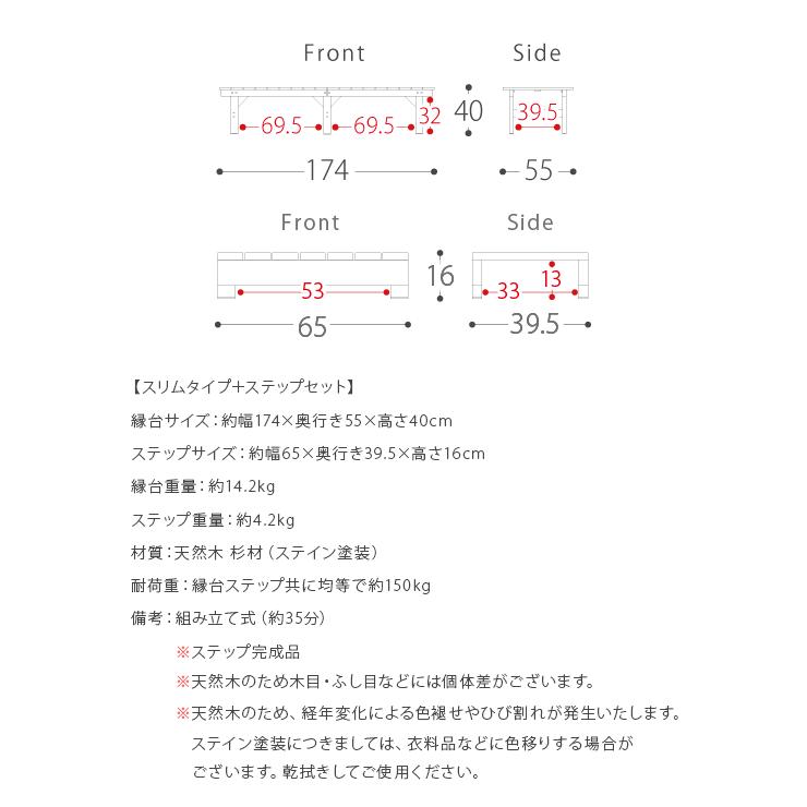 【縁台サイズ】約幅174×奥行き55×高さ40cm
