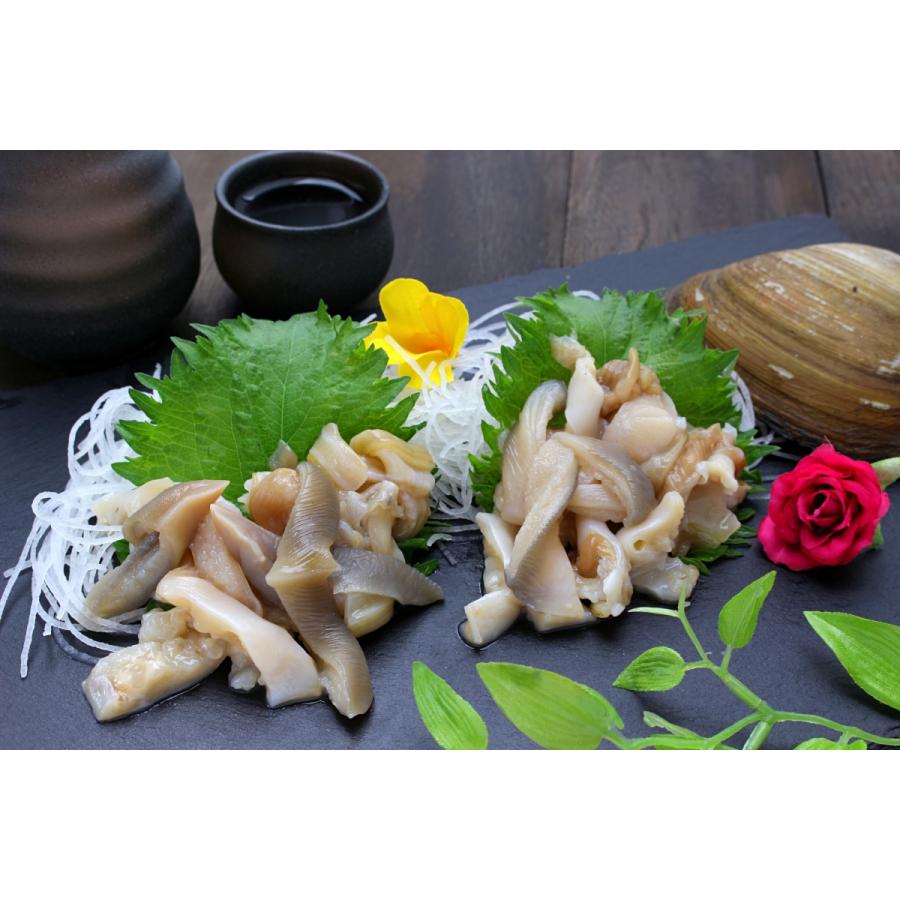高級貝の一つ北寄貝。刺身で食べればシコシコとした食感と口いっぱいに広がる磯の香がたまりません。生のままでも充分おいしいですが、数秒お湯にくぐらせるとさらに甘みが増し違った味わいが楽しめます。・産地:北海道産(入荷がない時は青森県産になる場合がございます)・内容量:1kg前後 (250g~500gを2~4個)・保存方法:冷蔵・賞味期限:1~2日