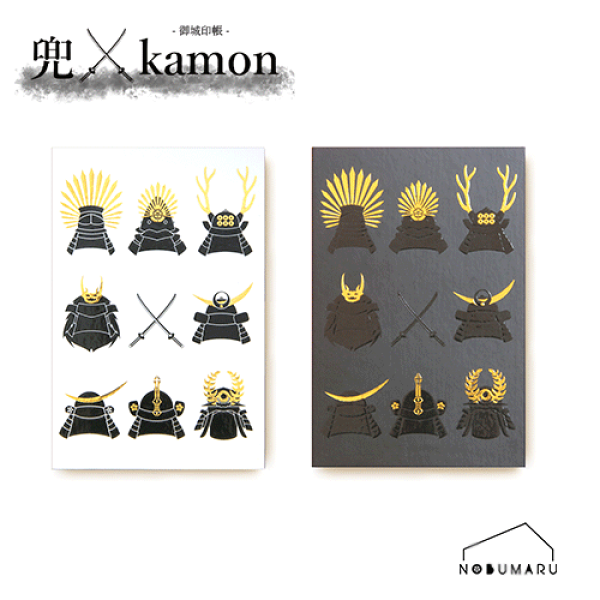 【メール便送料無料】御城印帳 兜×kamon 家紋 ケーエス<br>レトロ 歴史 御朱印帳 白 黒