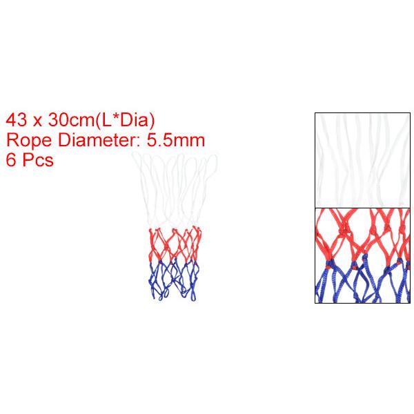 スタイル: 8ループ; カラー: ホワイト レッド ブルー; 全体のサイズ: 43 x 30 cm(L*直径); ロープ径: 5.5 mm; パッキングリスト: 6個 x ミニバスケットボールネット