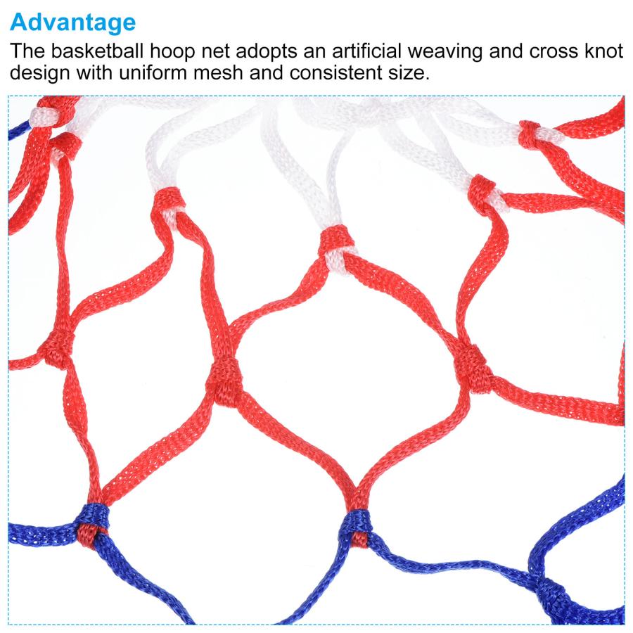 利点: 8ループバスケットボールネットはラウンドロープで設計されており、耐摩耗性、耐引張性、耐候性、耐食性のある丈夫なPP素材で作られています。バスケットボールのフープネットは、均一なメッシュと一貫したサイズの人工織りと十字結び目のデザインを採用しています。