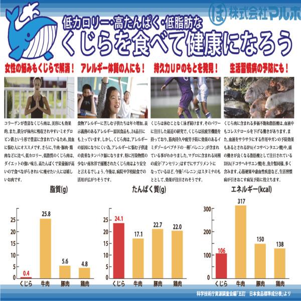 高たんぱく・低脂質・高鉄分でヘルシーなのに旨味ぎっしりの鯨肉を是非お召し上がりください。