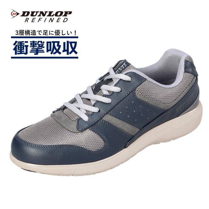 ウォーキングシューズ メンズ スニーカー 軽量 幅広 ダンロップ リファインド DC1004 ひも 靴 ファスナー付き 軽量 幅広 4e ワイド 膝に優しい クッション