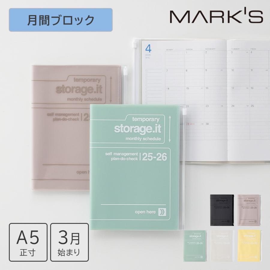【50%OFF】手帳 2025 スケジュール帳 2025年3月始まり 月間ブロック A5正寸 ストレージイット マークス スライドジッパー付き PVCカバー シンプル おしゃれ