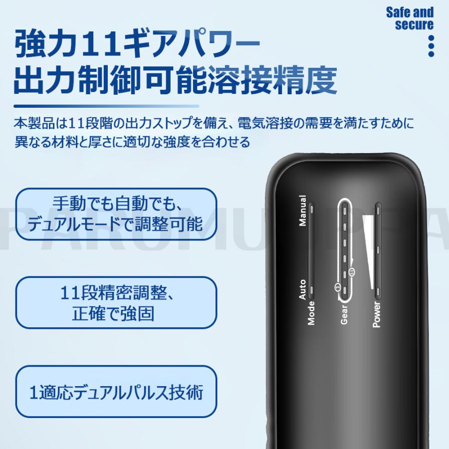 強力11ギアパワー:本製品は11段階の出力ストップを備え、電気溶接の需要を満たすために、異なる材料と厚さに適切な強度を合わせる,動でも自動でも、デュアルモードで調整可能、11段精密調整、正確で強固、適応デュアルパルス技術。