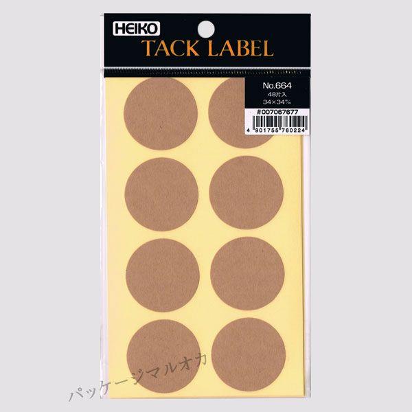 HEIKO タックラベル シール NO.664 丸 未晒 Φ34mm 48片 HEIKO 7067677 (62-1031-09)