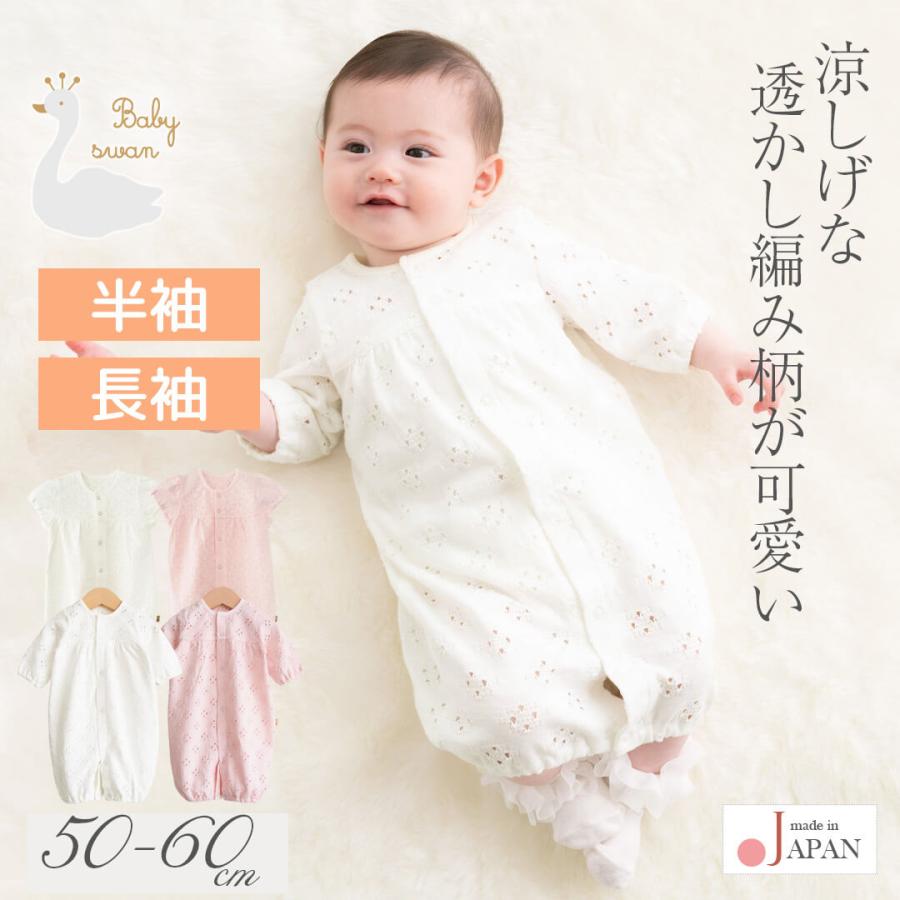ツーウェイオール カバーオール ロンパース 50cm 60cm 透かし編み 2wayオール ベビースワン 長袖 半袖 ベビー服 新生児 ベビー 女の子 服 コンビドレス 春 夏 服 ソルメッシュ おしゃれ かわいい ギフト 出産準備 涼しげ 透かし編み柄 通気性 ホワイト 白 ピンク 編み 編み柄 刺繍 花柄 レース ベビー カバーオール 綿100 コットン 速乾性 伸縮性 赤ちゃん プレゼント 出産祝い