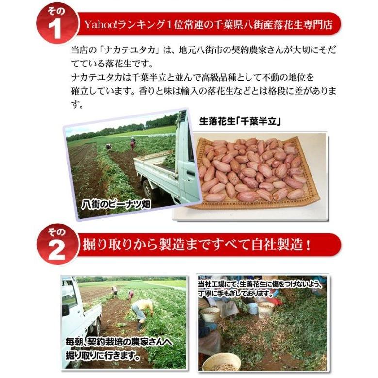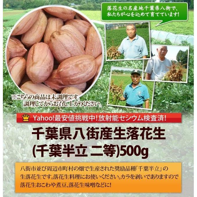 本場千葉県産100%の生落花生を料理にお使いください。(千葉半立)◎豆知識 現在千葉県産落花生には、晩生種「千葉半立」早生種「ナカテユタカ」の2代品種があり、八街市の奨励品(煎ざや、味付、バタピーナツ)は「千葉半立」に適し、ゆで落花生、落花生甘納豆は豆質がやわらかい「ナカテユタカ」が適しております。※こちらの商品は未調理ですので、そのままではお召し上がりいただけません。調理してからお召し上がり下さい。品 名:未調理生落花生産地名:千葉県産100%原材料:落花生品種名:千葉半立