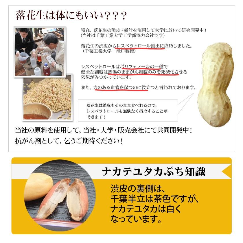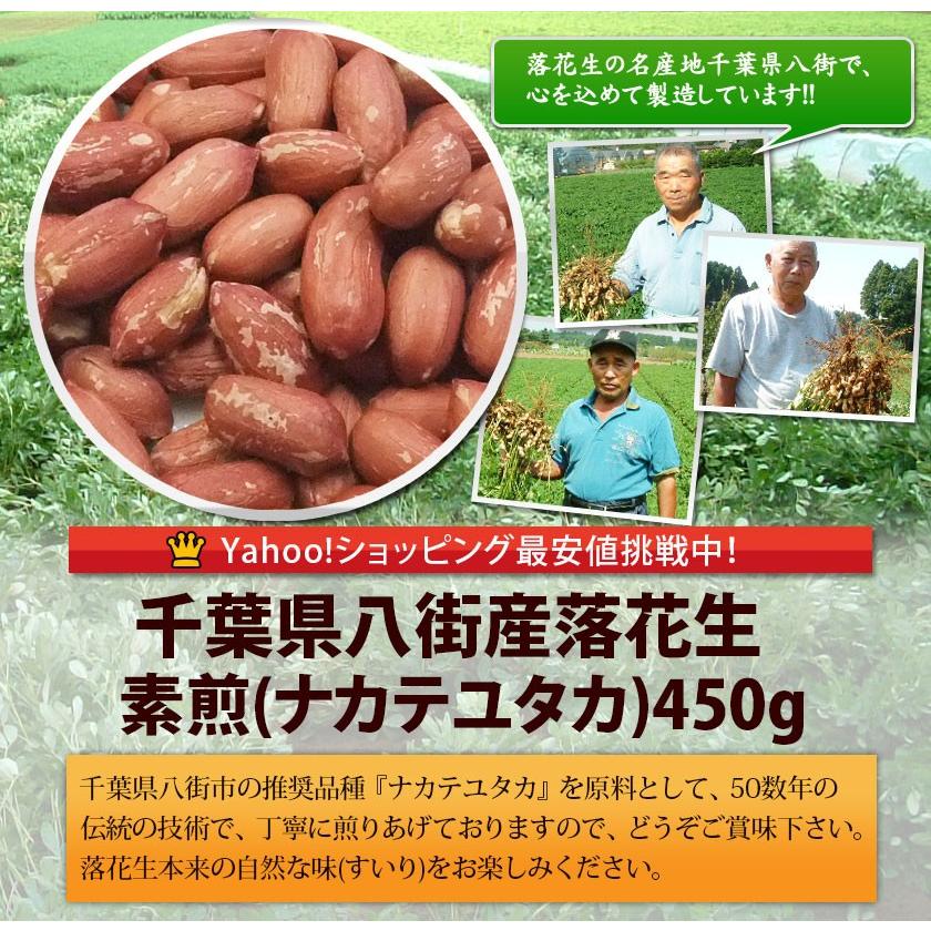 千葉県産落花生「ナカテユタカ種」を50数年の伝統の技術で丁寧に煎りあげております。味付のしていない、落花生本来の自然な味です。一番栄養のある渋皮ごとお召し上がりいただけます。■品 名:素煎■産地名:千葉県産100% ■原材料:落花生(ピーナツ、ピーナッツ) ■品種名:ナカテユタカ■内容量:450g■賞味期限:70日、開封後2〜3日 ※直射日光、高温多湿を避けて保存して下さい