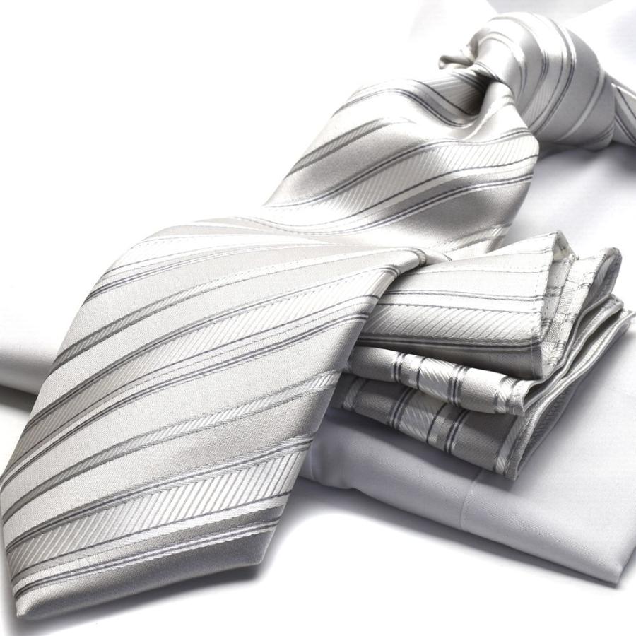 サイズ縦143センチ×幅8センチ/チーフ23センチの正方形 材 質シルク100%色ホワイトベースにグレー、シルバーのストライプ商品説明写真と多少の色の異なりはご了承下さい。 ポイント利用