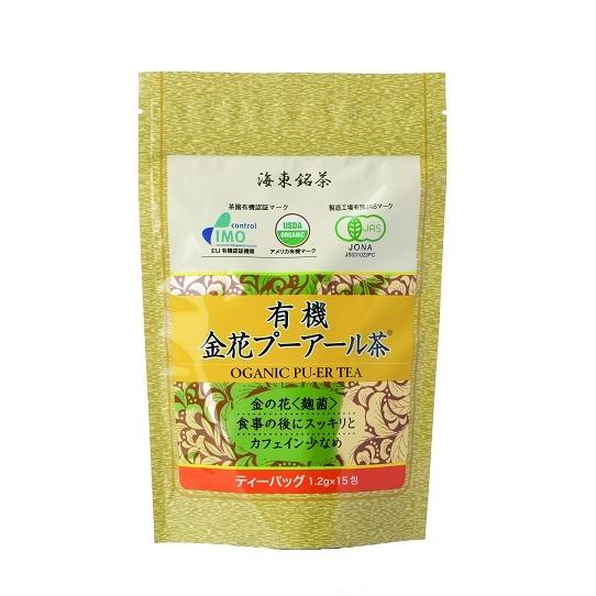 [海東銘茶 オーガニック] 中国茶 有機金花プーアール茶 1.2g×15包 /発酵茶 金花プーアール ぷーあーる茶 ティーパック 茶畑 JASマーク シルクロード