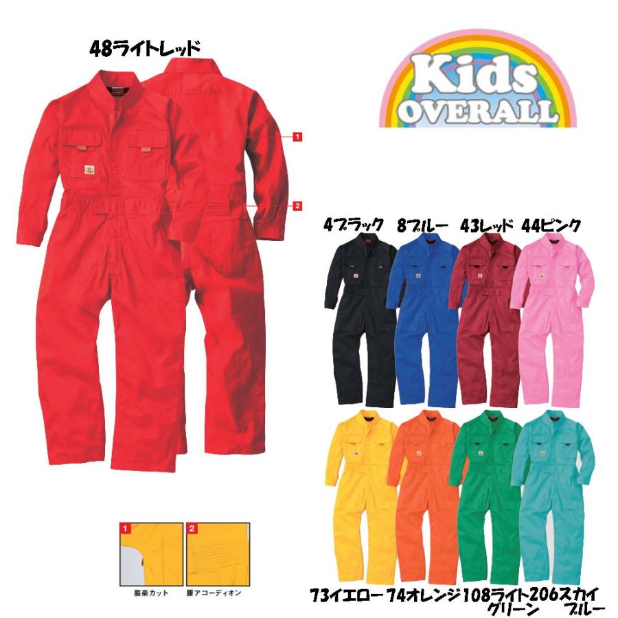 ☆子供用サイズの綿100%にカラーつなぎ服です。