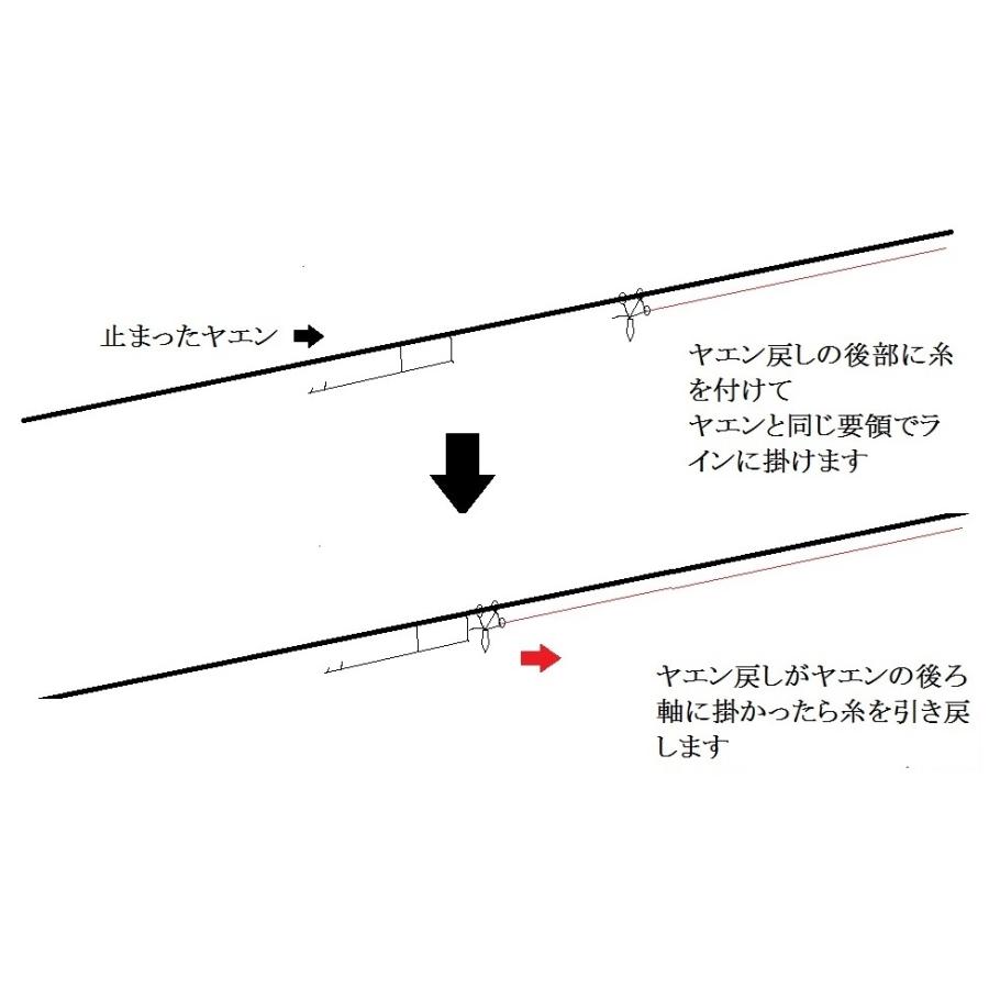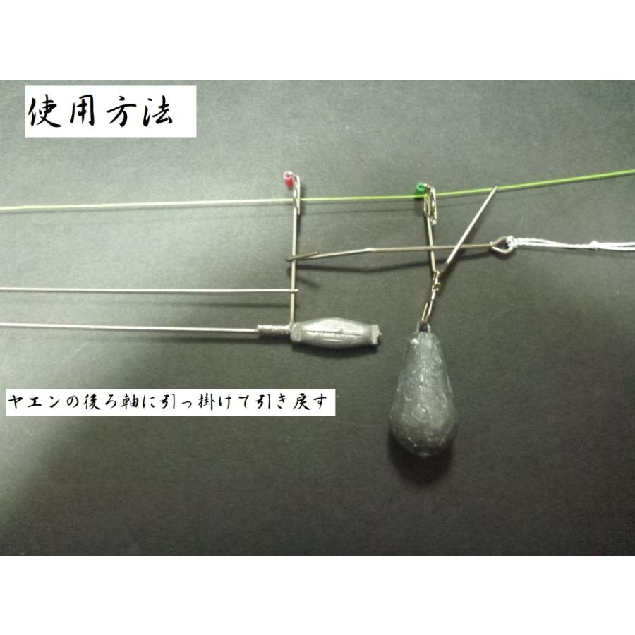 止まったヤエンを引き戻すローラー付きヤエン戻しPEライン等を後ろに結んで使用して下さいナス型オモリ等で使用して下さい岩やロープにガッチリ根掛かりしたヤエン等は戻せません。*注 一つ一つ丁寧に作ってますが、歪み、角度誤差等がございます。製品に対して神経質な人の購入はご遠慮ください。腐食防止のために、使用後は真水で洗って保管してください。購入前にストアについて及び発送方法を熟読ください。
