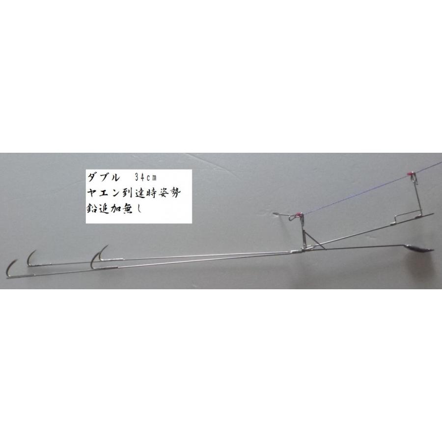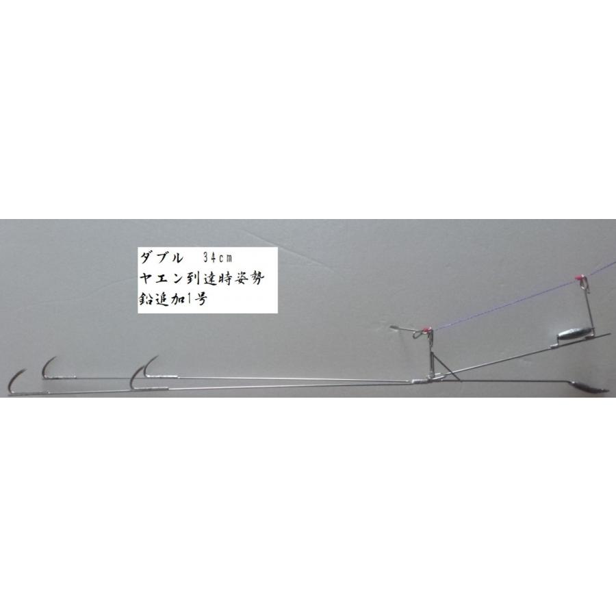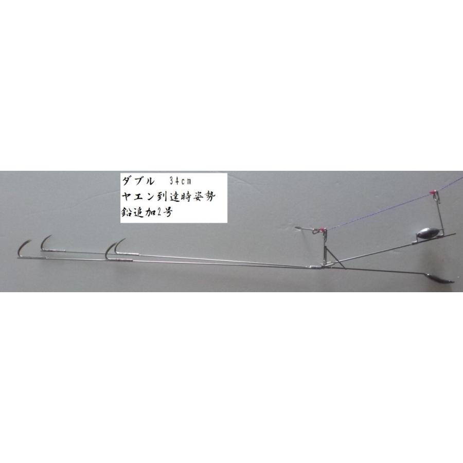 ダブル 全長 約34cm 鉛1.5号 針2x2 主軸針側1mm 後方下段軸1.2mm 可動軸1mm 重さ約14g
