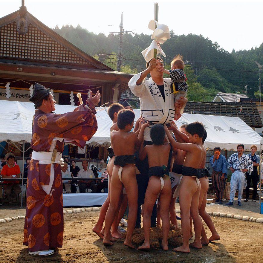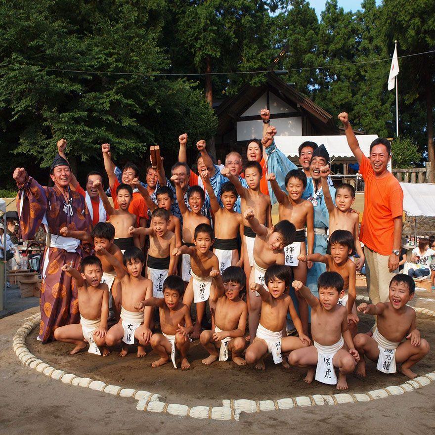 奉納相撲の講元は、小兵で技が冴えた「玉の川」という力士が仕切っていたといわれています。昭和に入ると、講元は奥多摩町梅沢の「誠石(四股名)」となり、終戦後は地元親睦会の青年団に受け継がれ、現在は日向和田子供会が9月1日に近い日曜日に奉納しています。