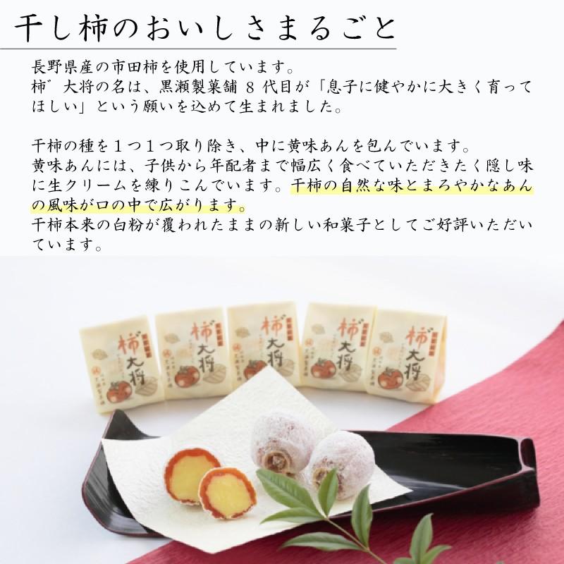 当店で一番の売れ筋の柿¨大将(ガキ大将)は長野県産の市田柿を使用しています。