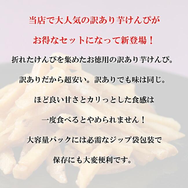 折れたけんぴを集めたお徳用の訳あり芋けんぴ(芋かりんとう)。折れていても味は同じ。程良い甘さとカリッとした食感がクセになる、ヤミツキ必死の芋菓子です。原材料 さつま芋(国内産)、砂糖、植物油脂、オリゴ糖内容量 1kg(500g×2袋)賞味期限 製造より120日2か月以上先のものを発送しています。保存方法 直射日光、高温多湿をおさけ下さい。