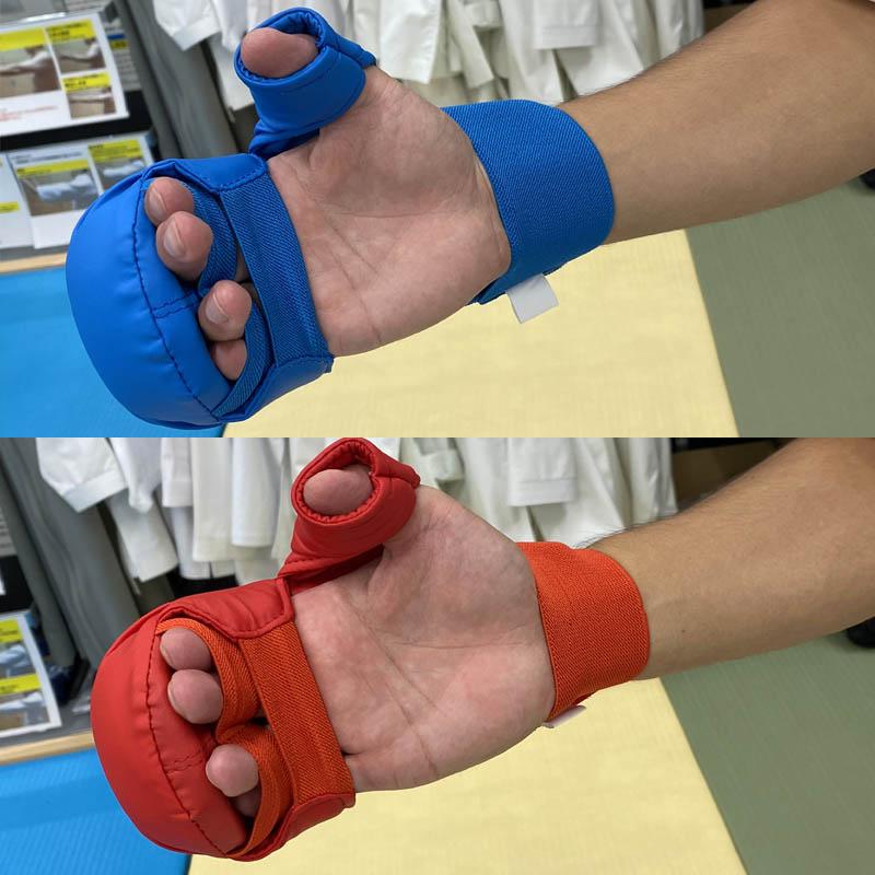 空手の試合で使われるのは連盟の公認をとった防具ですが、これは公認をとってない拳サポーターです。