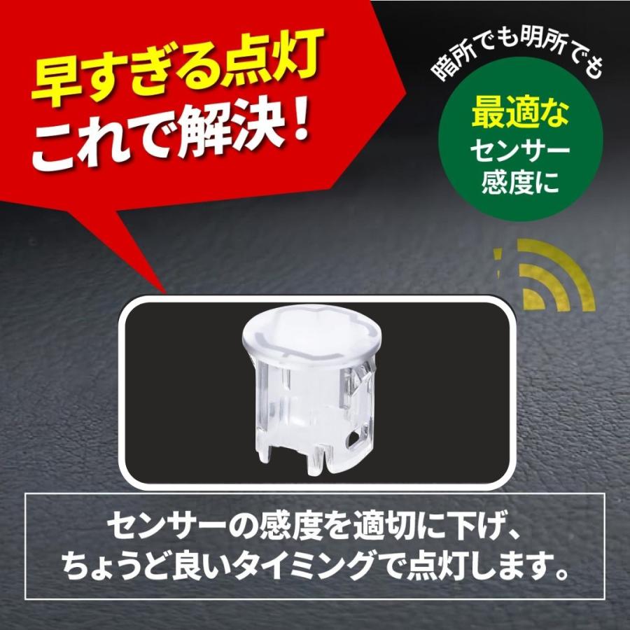 本製品は透明クリアレンズで適切なタイミングでライトが点灯するように自動調整します。