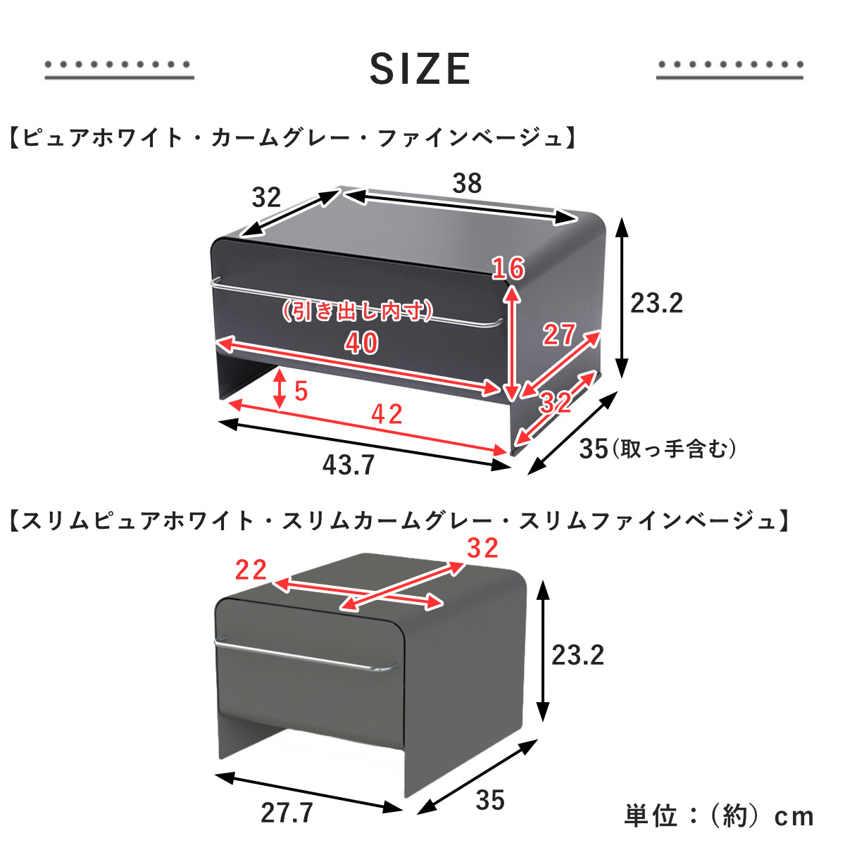 サイズ/【ピュアホワイト・カームグレー・ファインベージュ】