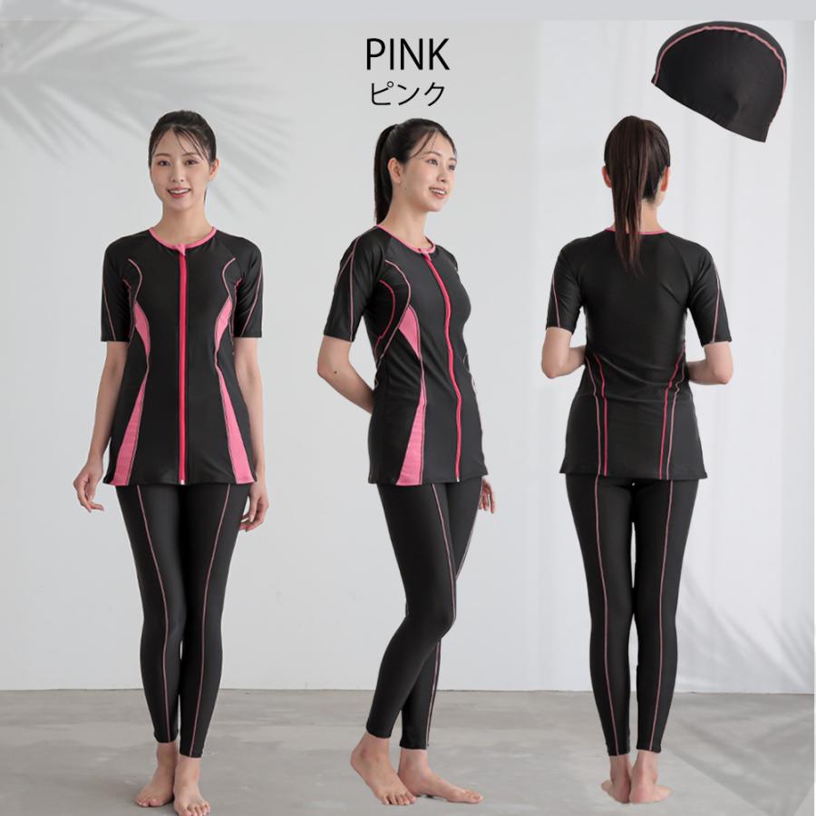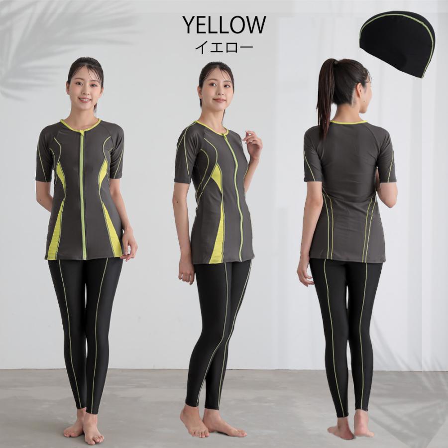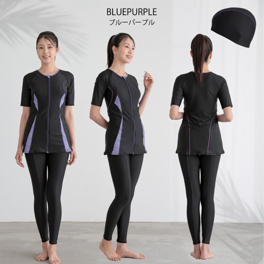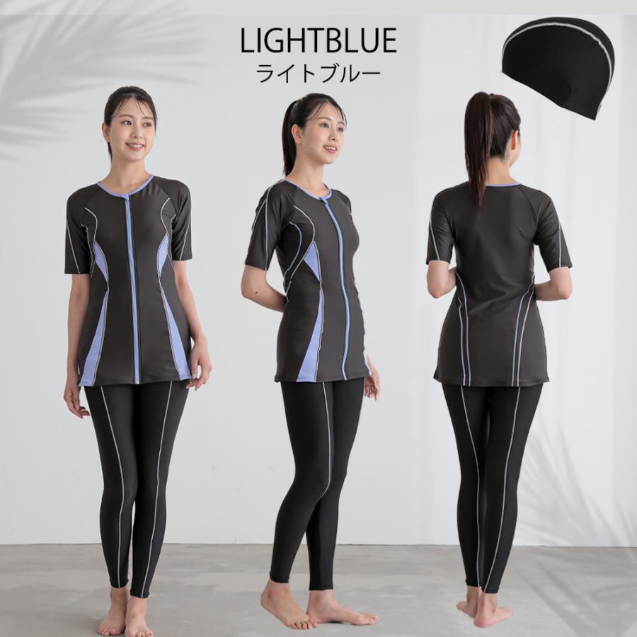フィットネス 水着 レディース フィットネス水着 スイムキャップ 半袖 袖付き ロング丈 大きいサイズ 体型カバー 水陸両用 かわいい セパレート ママ 水着 レ…