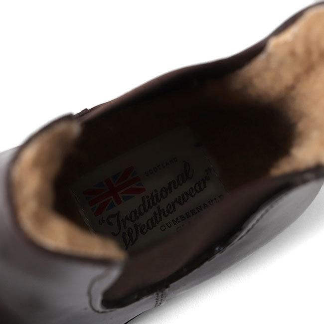 サイドゴア仕様で容易に脱ぎ履きが可能で、ヒール部分にはプルストラップも備えています。